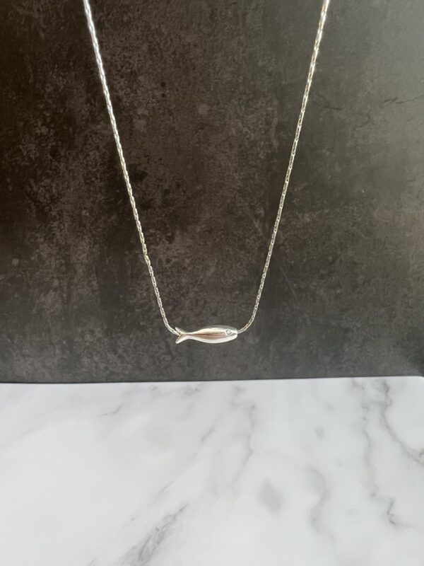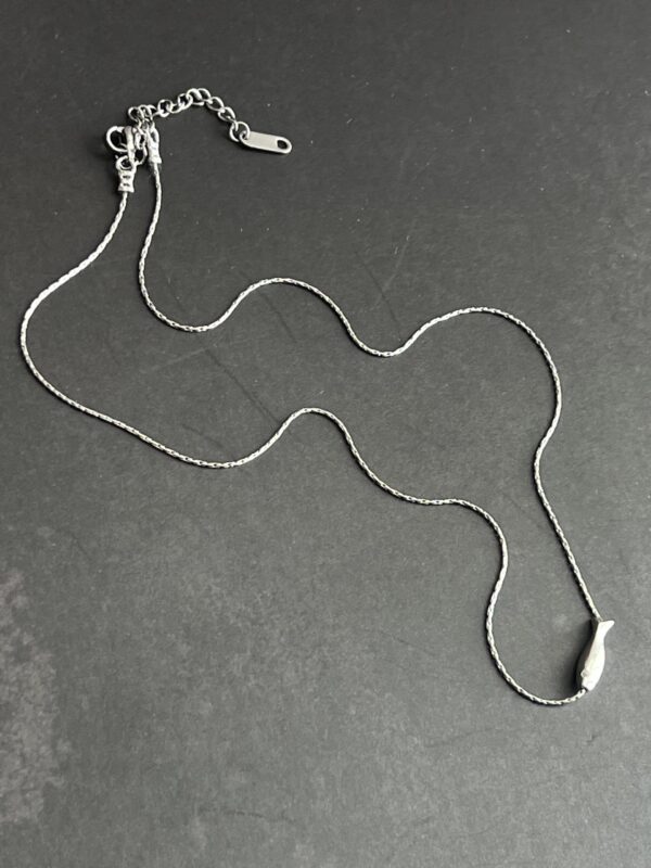 שרשרת חוליות כסופה דקה ועדינה מאוד עם חרוז דג כסוף.