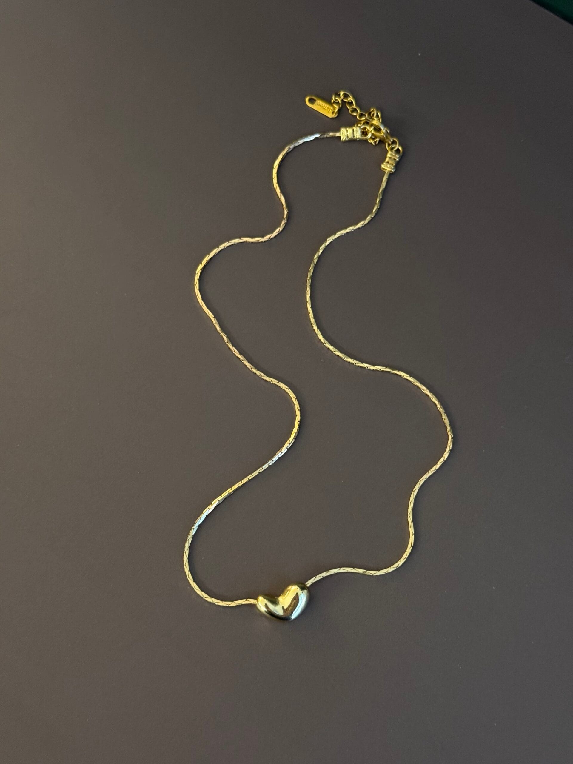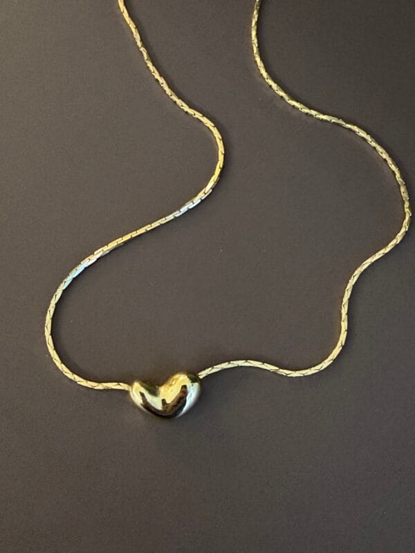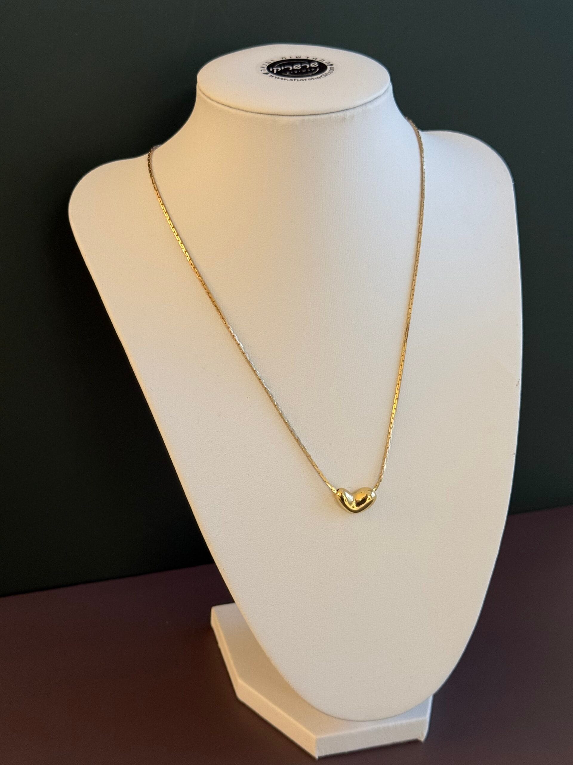 שרשרת חוליות בזהב עם חרוז לב נפוח.