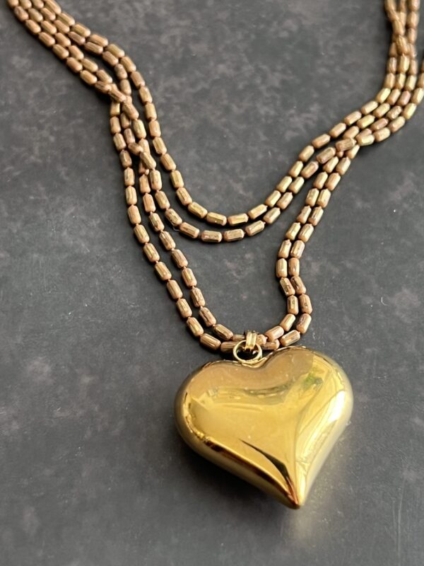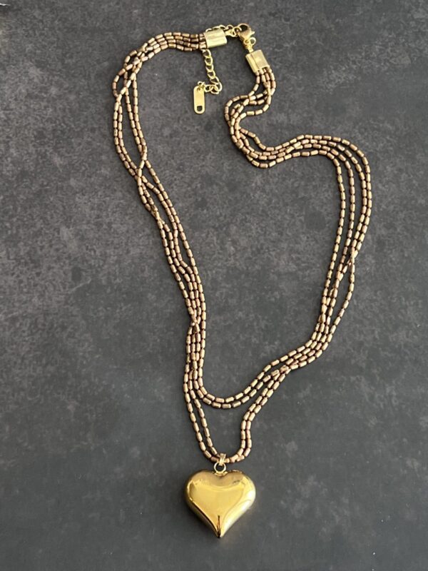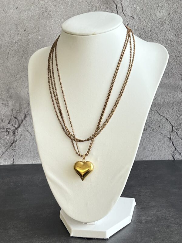 שרשרת אלגנטית עם נוכחות עדינה, המעוצבת בעבודת יד עשויה 4 שכבות של שרשרת חוליות ותליון לב מוזהב מיוחד.