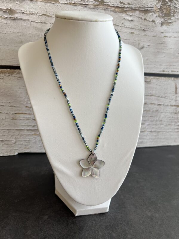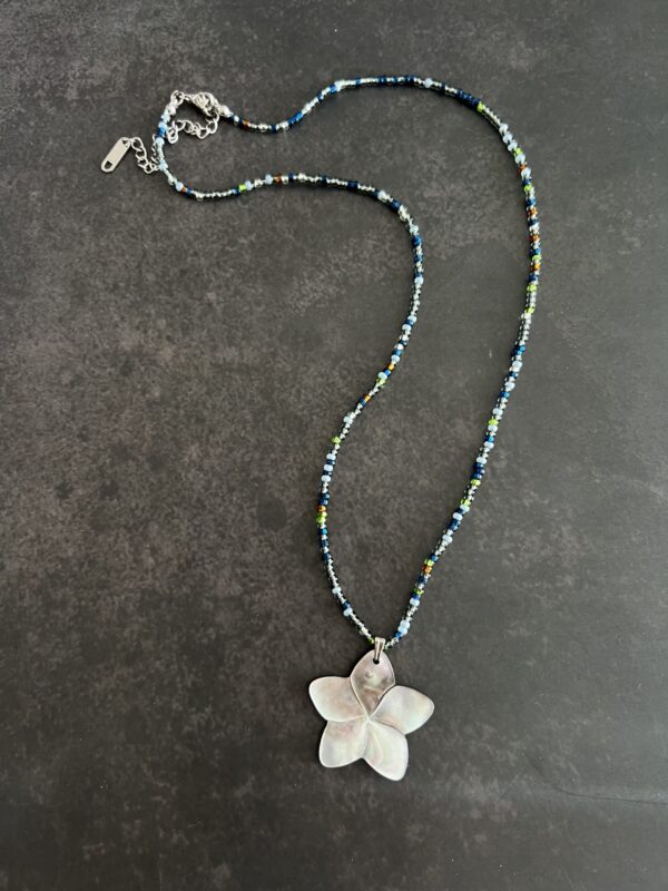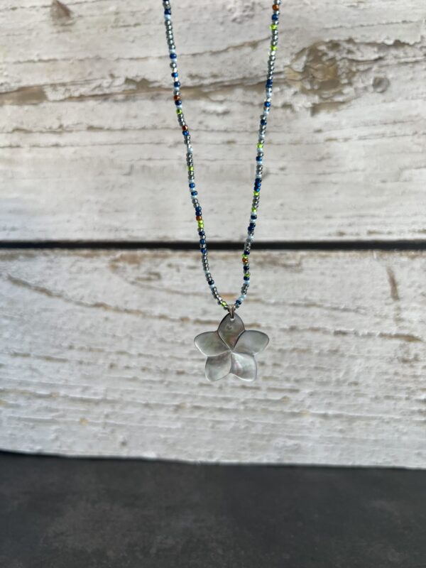 שרשרת חרוזים צבעונית עם תליון פרח צדף
