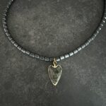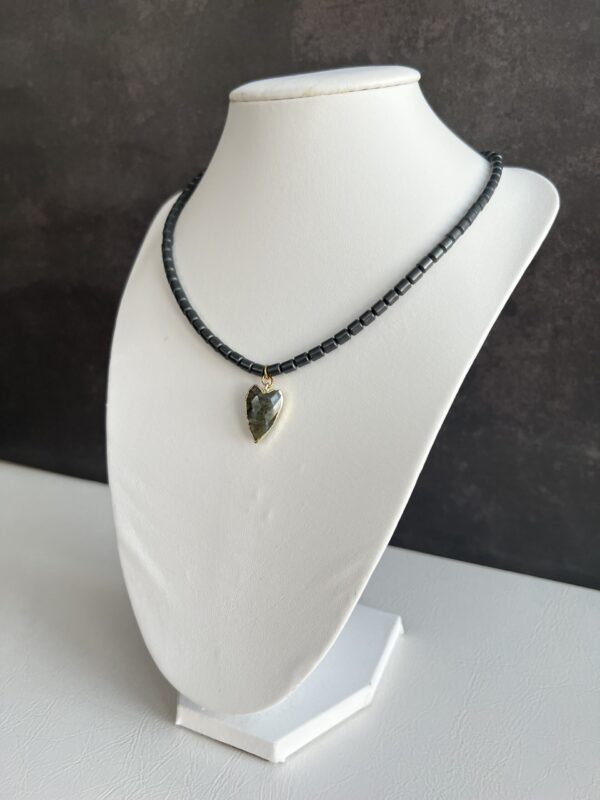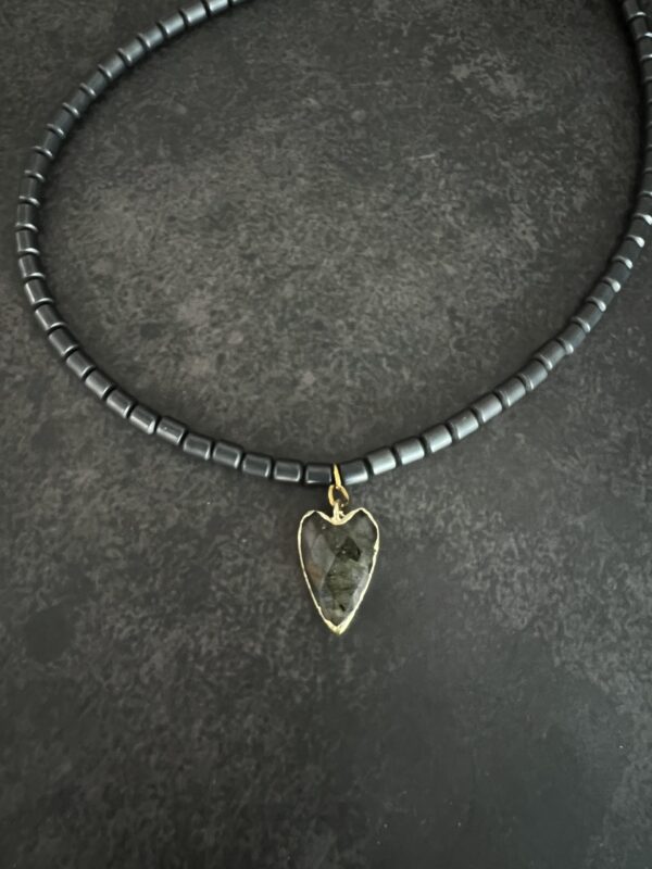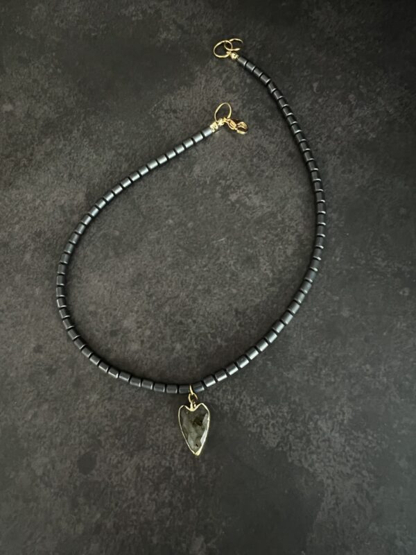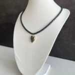 שרשרת חרוזי המטייט עם תליון לב בגוון שחור.