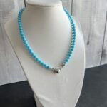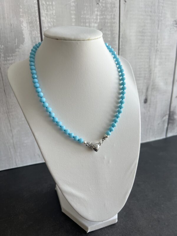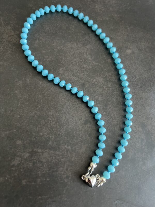 שרשרת חרוזים בחיתוך קריסטל בגוון תכלת וסוגר קדמי לב מגנט.