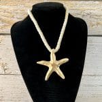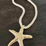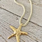 שרשרת עשויה חבל מלופף בגוון שמנת עם תליון גדול ודומיננטי – כוכב ים בצבע זהב.