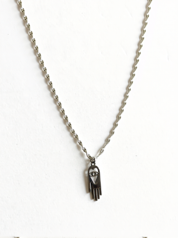 שרשרת ספירלה כסף 925 ותליון חמסה עם עין עשוי סטיינלסטיל מבריק .
