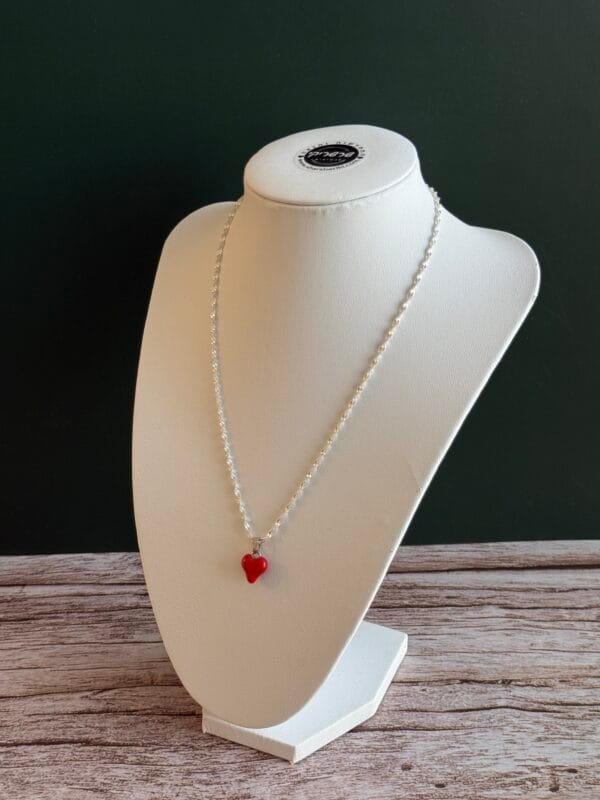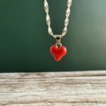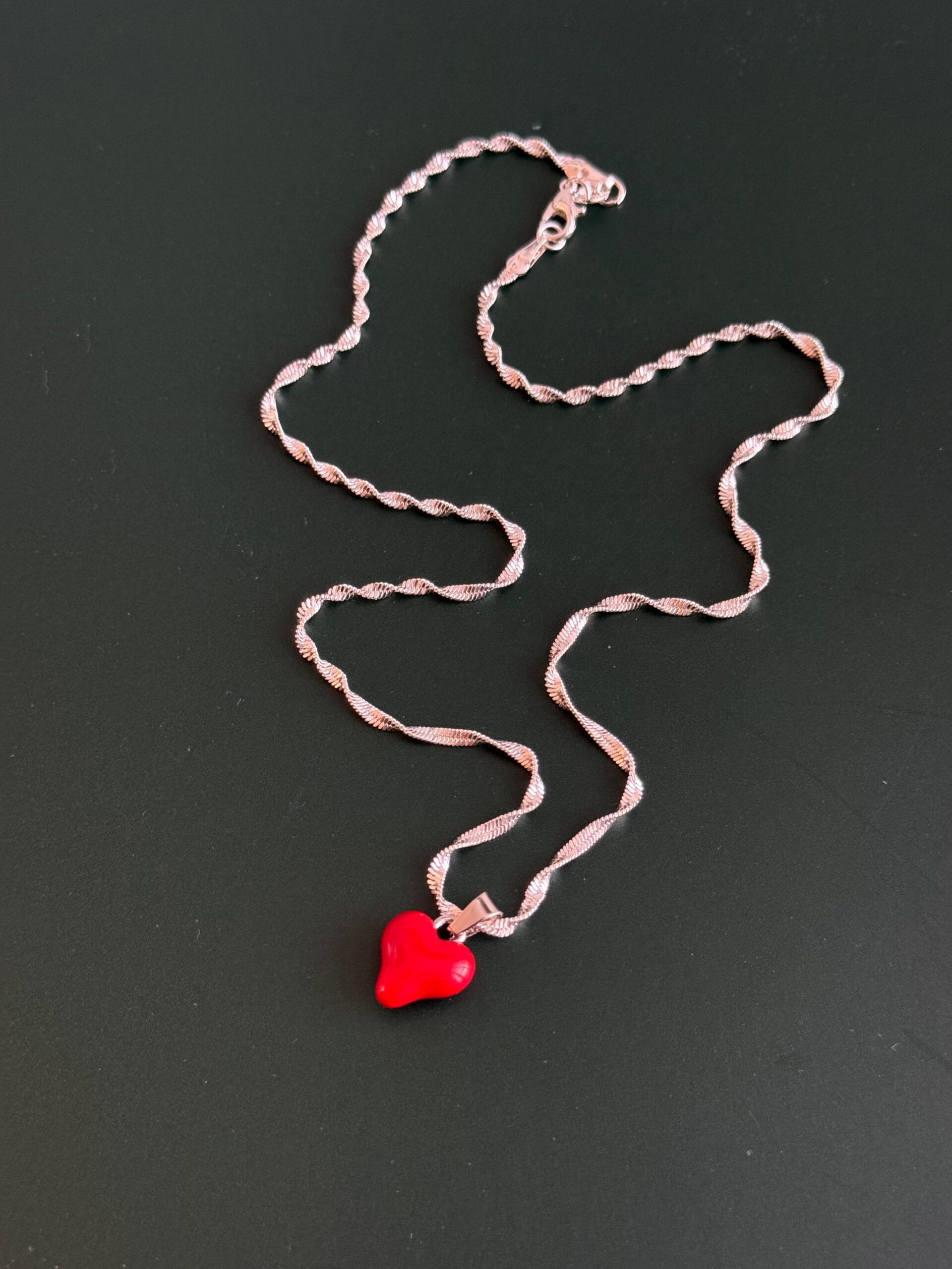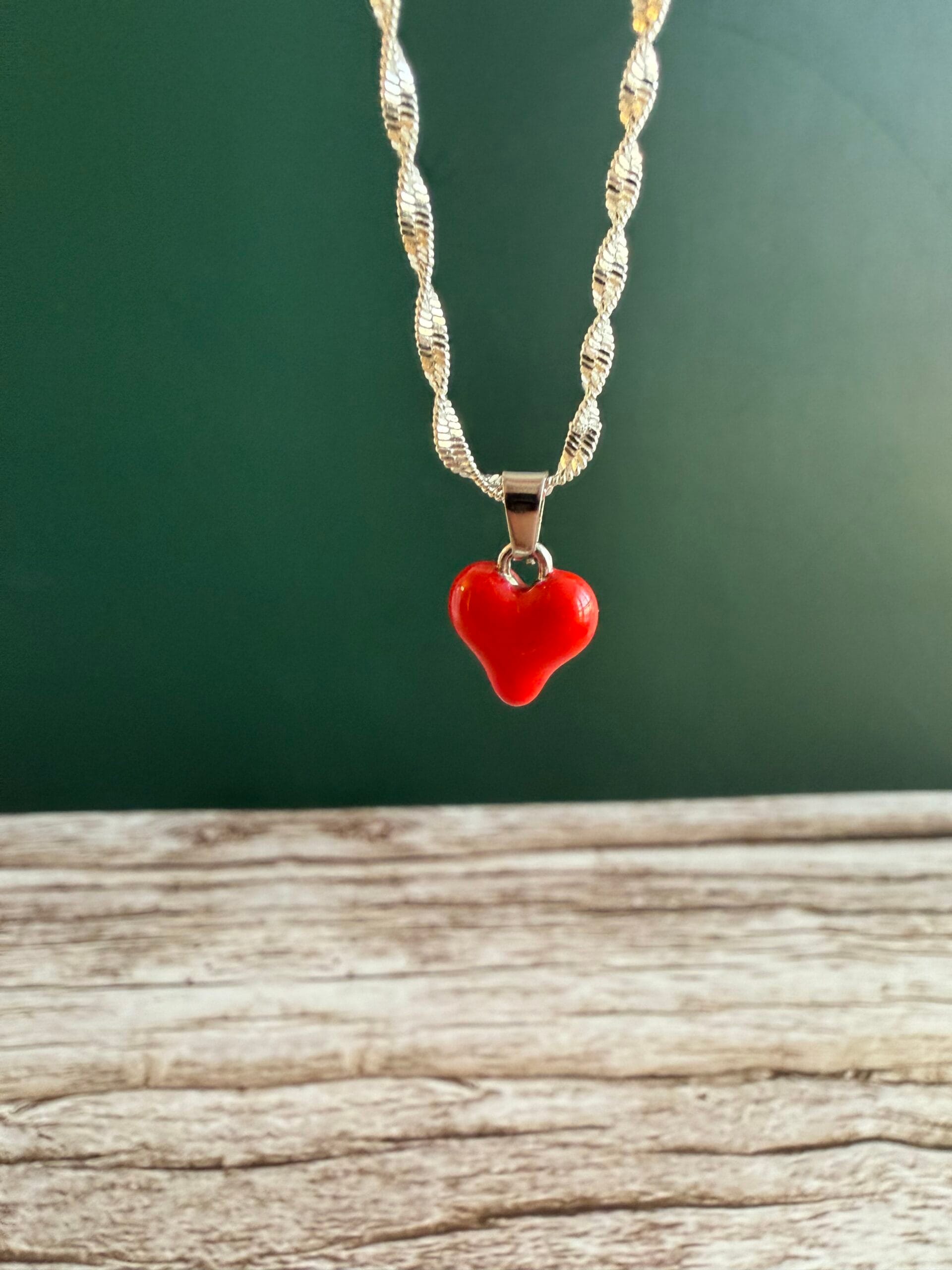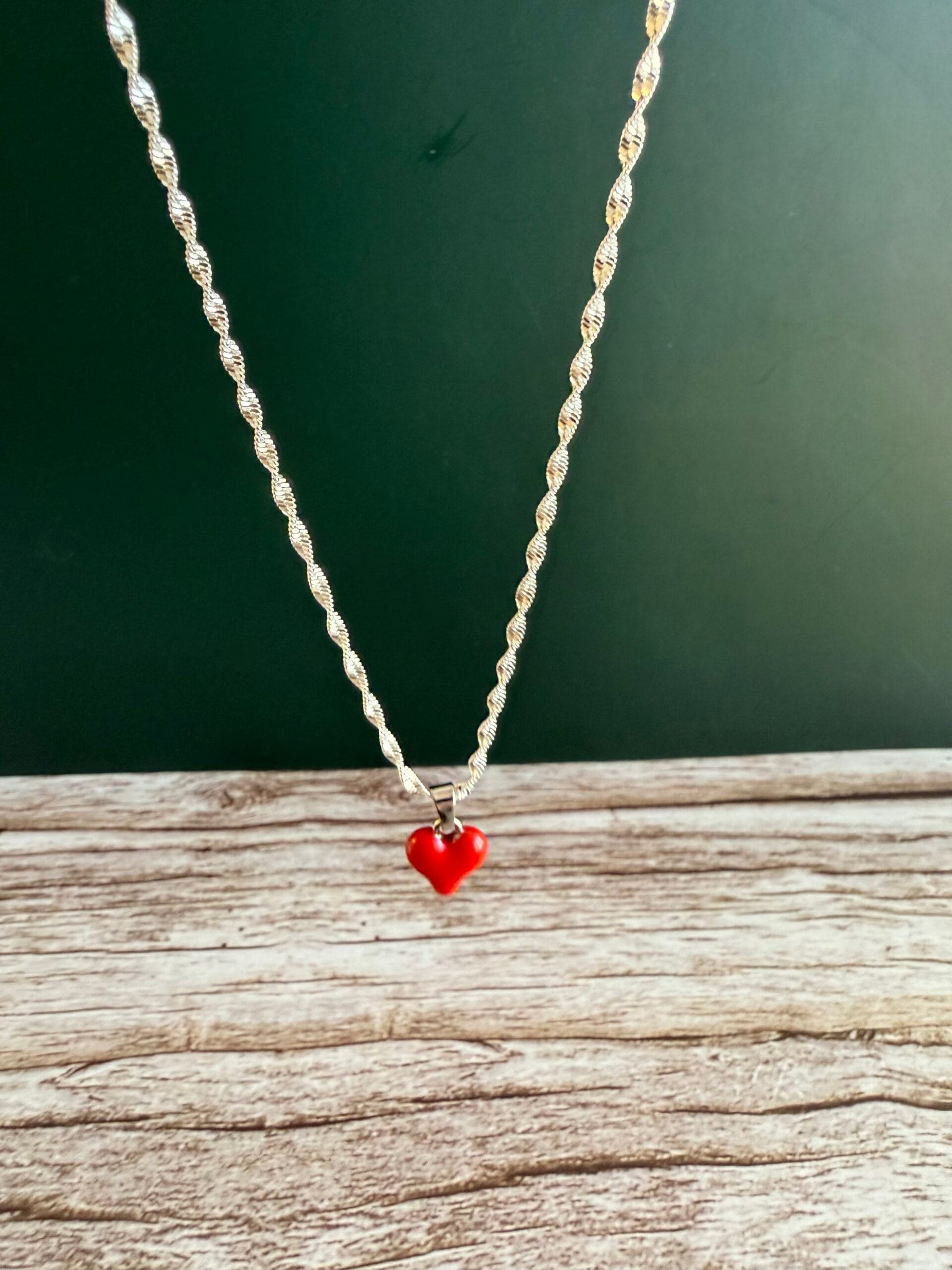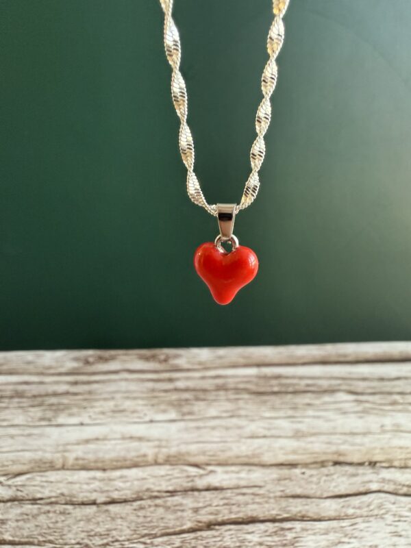 שרשרת ספירלה כסף 925 ותליון לב אדום .