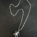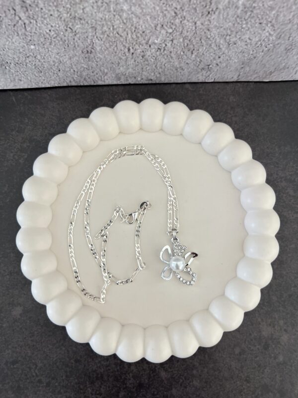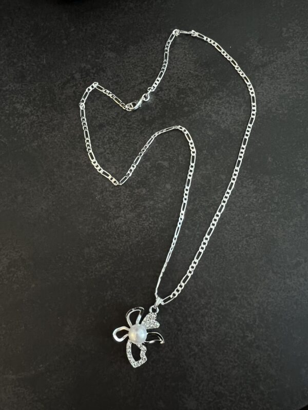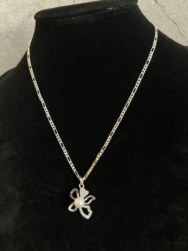 שרשרת לולאות כסף 925 ותליון פרח כסוף משובץ זירקונים ופנינה מלאכותית .