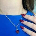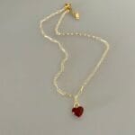 שרשרת לולאות אליפטיות קטנות ותליון לב בורדו עדין