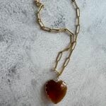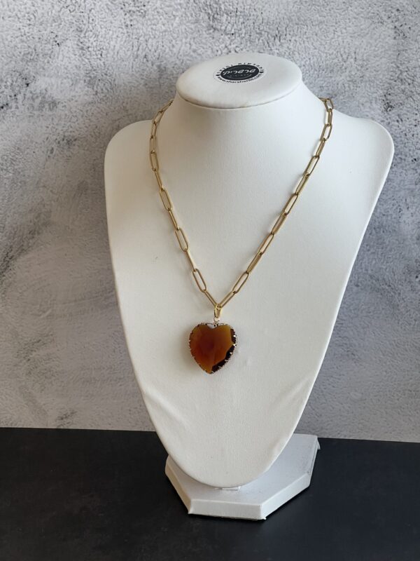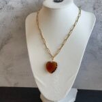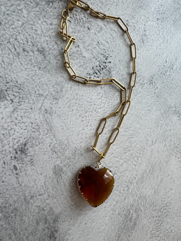 שרשרת לולאות גדולות אל חלד מצופה זהב איכותי עם זכוכית בגוון לב אמבר.