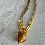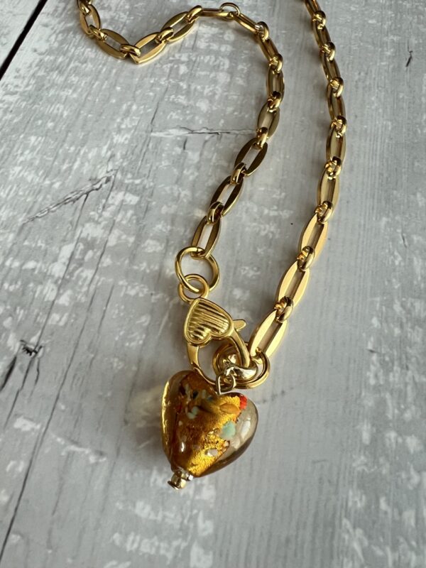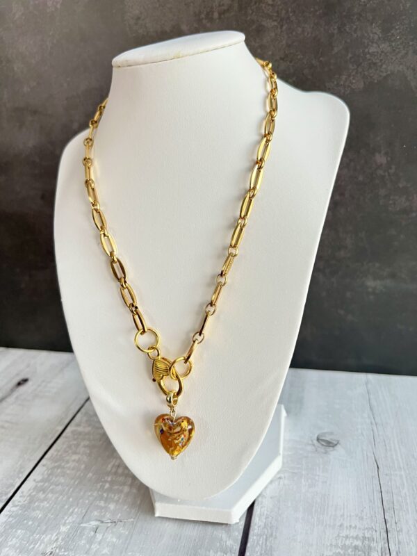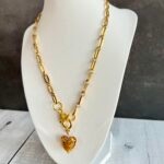 שרשרת לולאות אל חלד בציפוי זהב איכותי עם תליון לב אקרילי מעוטר.
