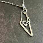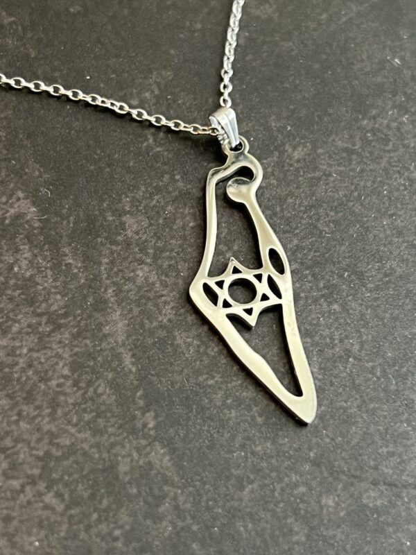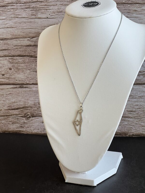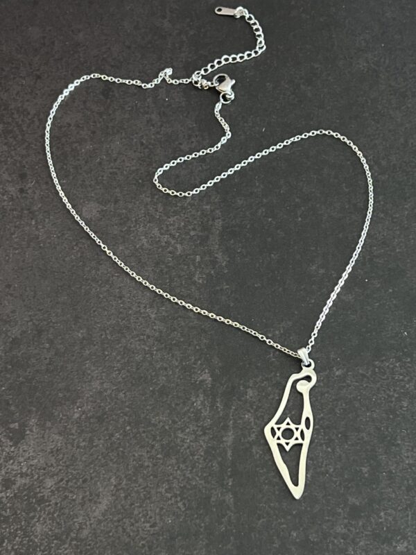 שרשרת לולאות עדינה עם תליון מפת ישראל ובמרכזה מגן דוד כסוף.