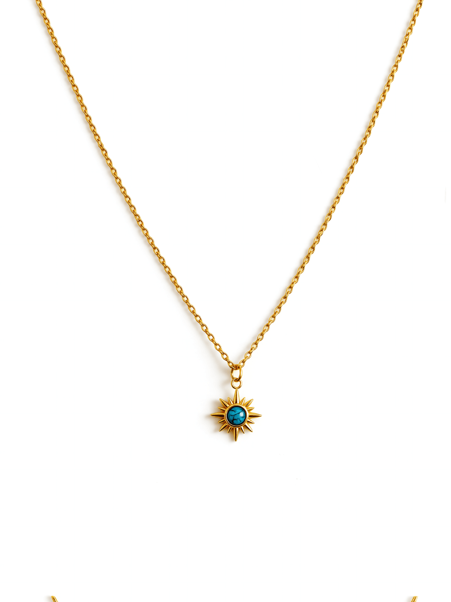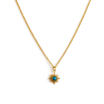 שרשרת לולאות מוזהבת, עדינה, עשויה מתכת אל חלד עם תליון כוכב ובמרכזו עין טורקיז.