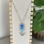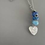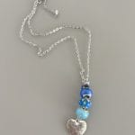 שרשרת לולאות אל חלד עם גדיל חרוזים בגווני כחול ותליון השראה .