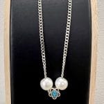 שרשרת לולאות עם חרוזים דמויי פנינים וצ'ארם משובץ אבן בגוון טורקיז.