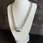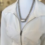 שרשרת לולאות אלומניום קלילה עם נוכחות שמצליחה להיות גם דרמטית וגם אלגנטית.