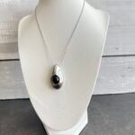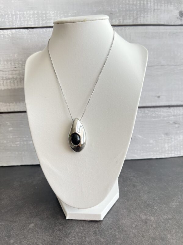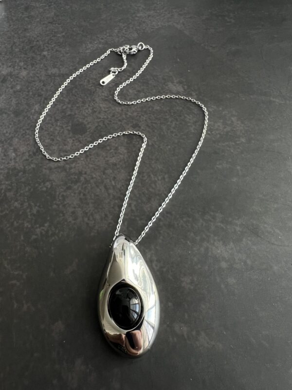 שרשרת לולאות אל חלד עם תליון כסוף מבריק משובץ באבן אגת שחורה .