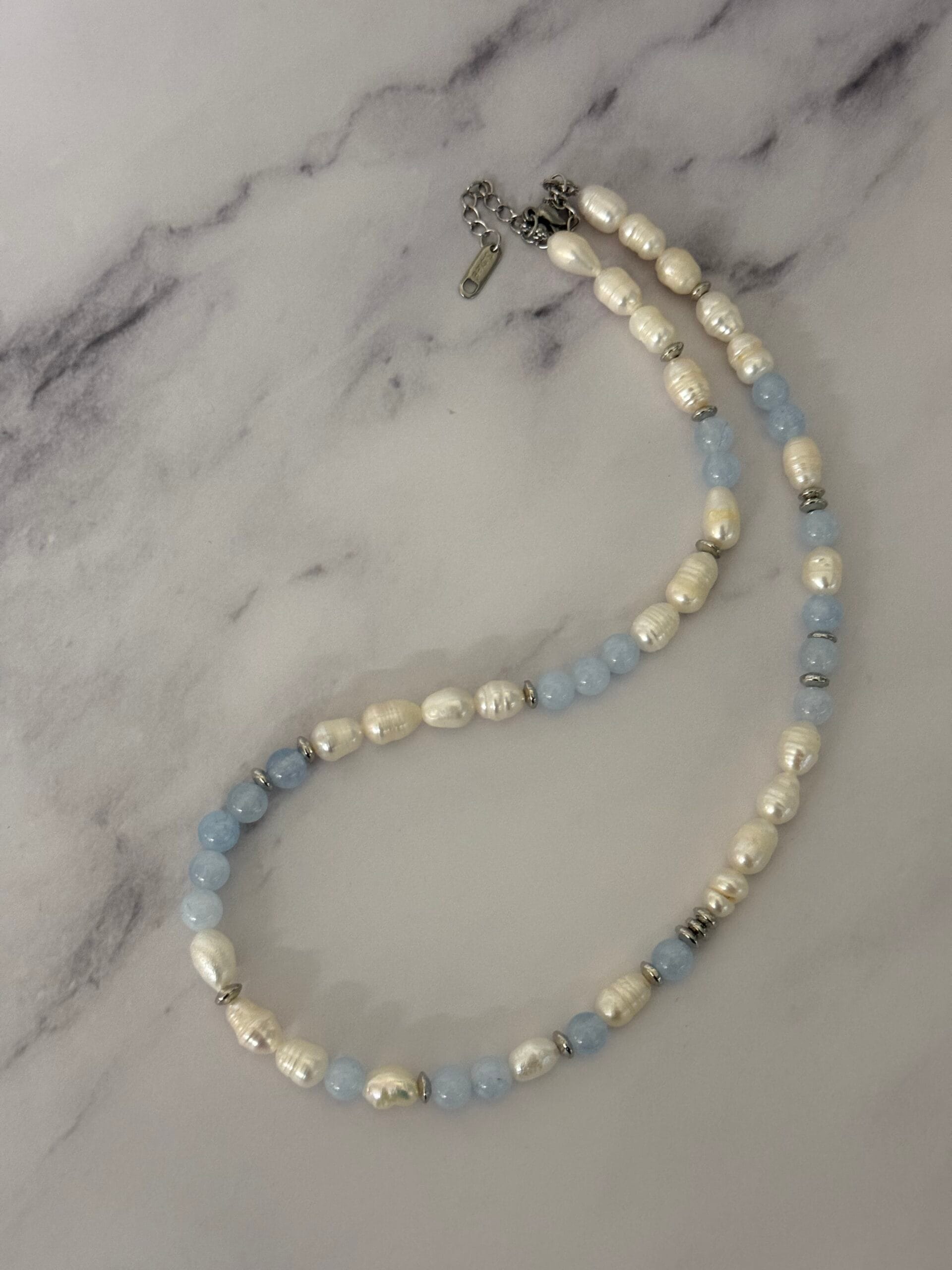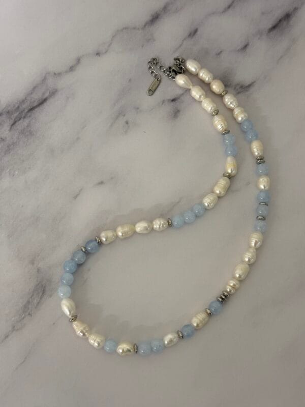שרשרת מים פנינים ואקוומרין