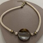 שרשרת נקודת חן עשויה מחבל ארוג מוזהב ואלמנט אקריל בצבע חום כשלצדדיו אבני חן.