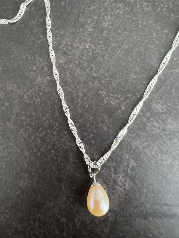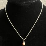 שרשרת כסף 925 ספירלית ועדינה עם תליון פנינה מתורבתת בגוון אפרסק.