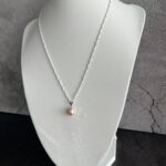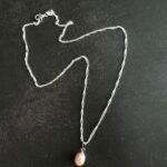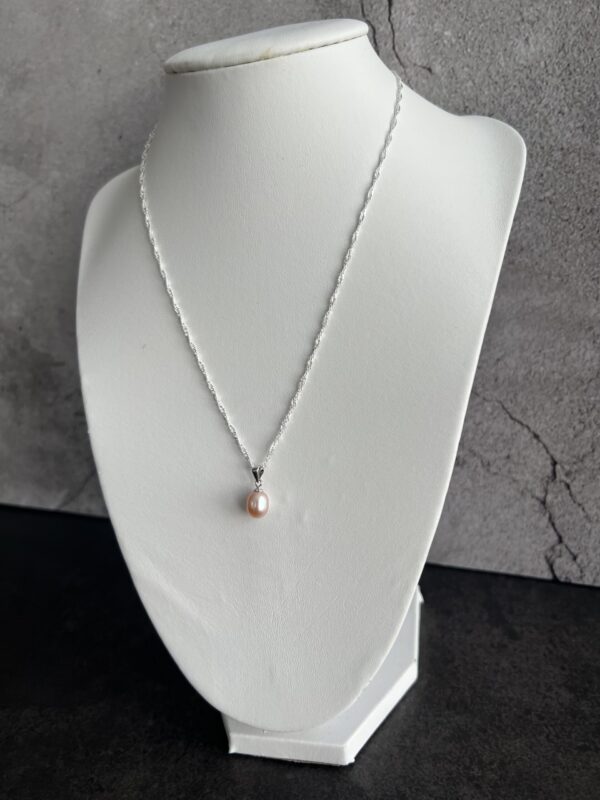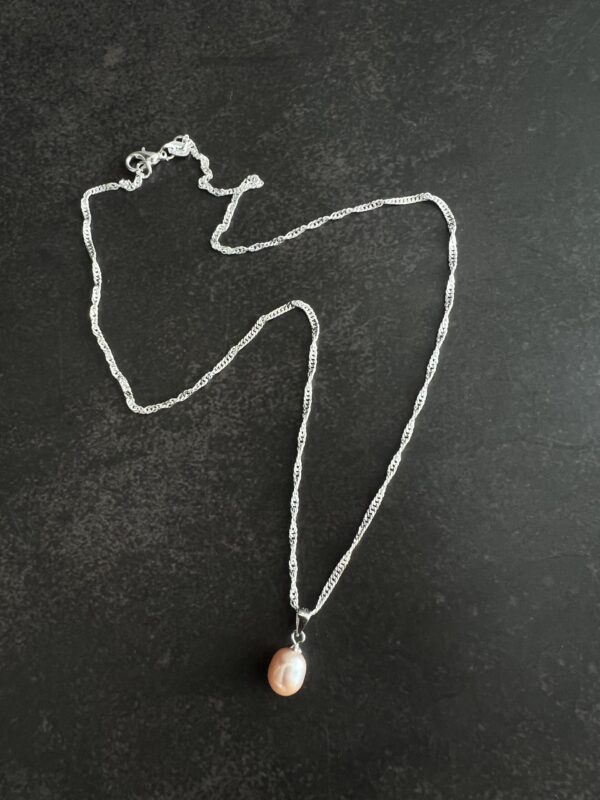שרשרת כסף 925 ספירלית ועדינה עם תליון פנינה מתורבתת בגוון ורוד בהיר.