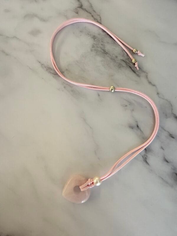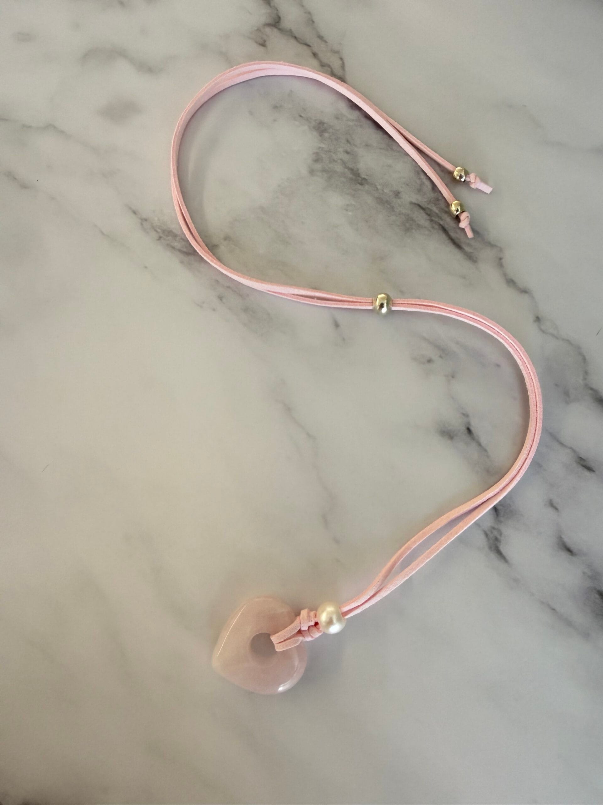 שרשרת עור בשילוב תליון לב רוז קוורץ ורוד, פריט מינימליסטי שיעניק לך המון נוכחות . תוכלי לענוד אותו בכמה אופנים צמוד לצוואר כמו צ’וקר . ובכל אורך שתרצי עד למנח של שרשרת ארוכה. הורסטיליות שלו הופכת אותו לפריט שימושי וכייפי.
