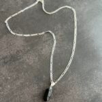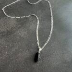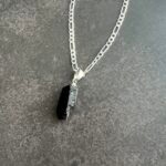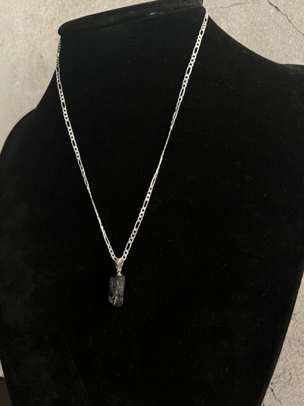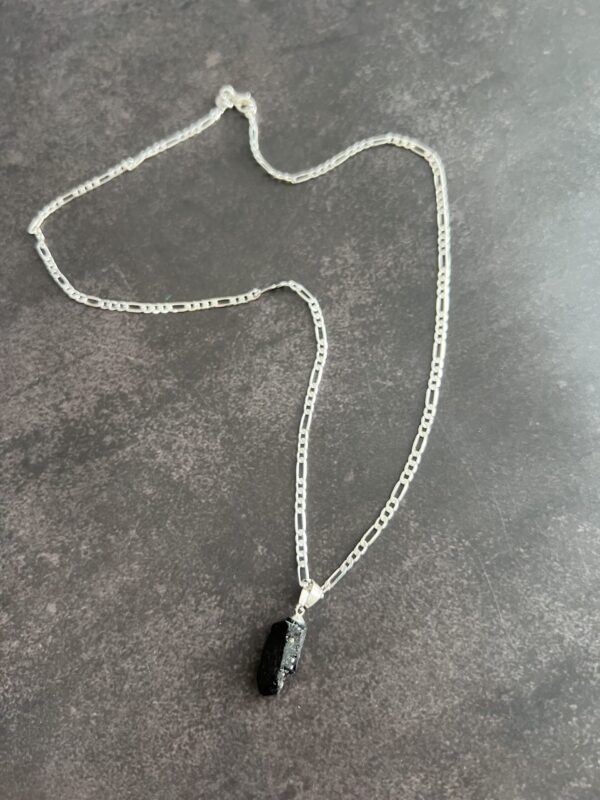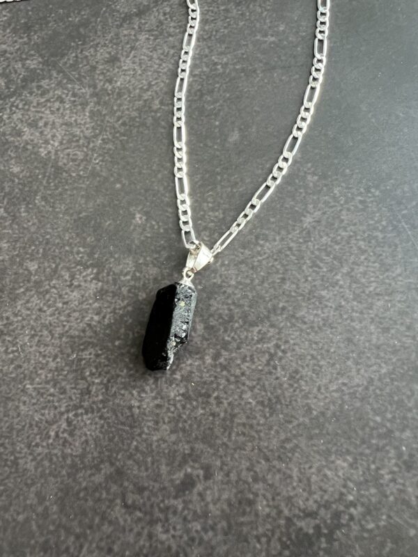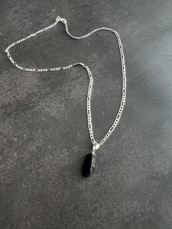 שרשרת פיגארו עשויה כסף 925 עם תליון אבן טורמלין שחור טבעי וגולמי.