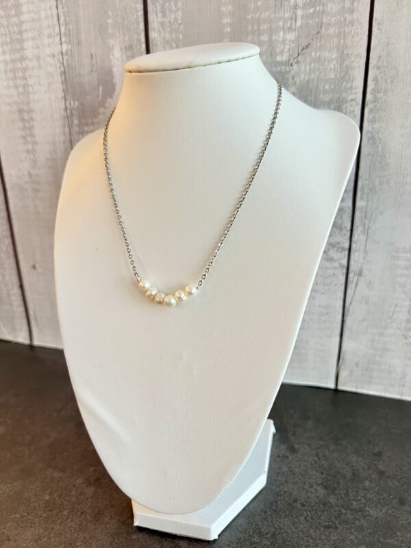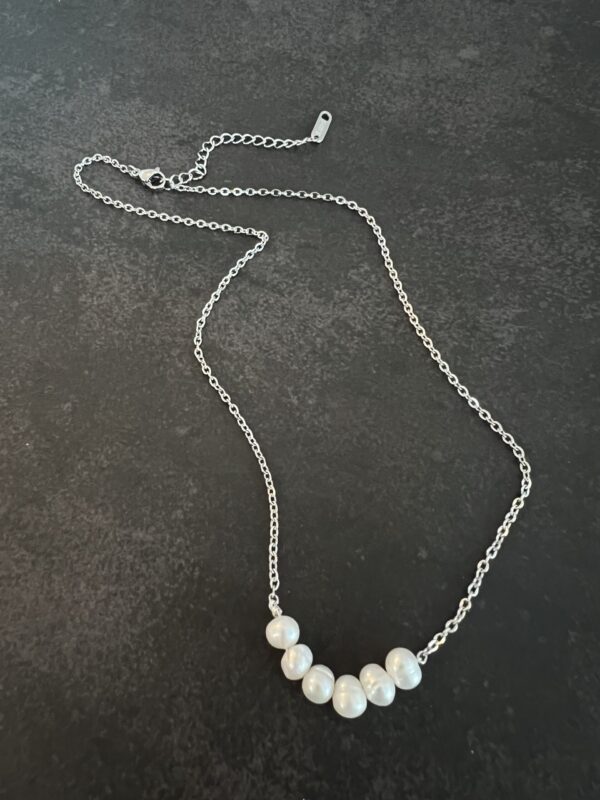 שרשרת לולאות אל חלד בשילוב פנינים מתורבתות .