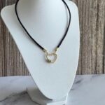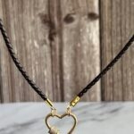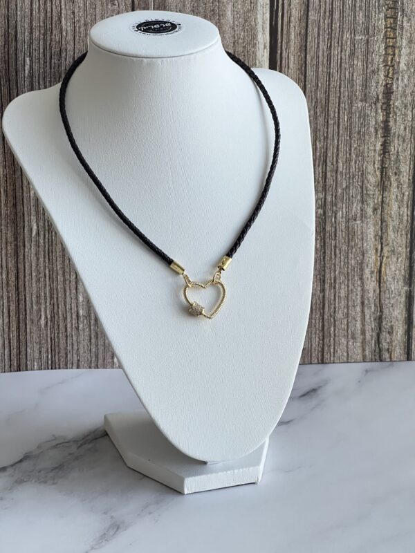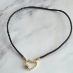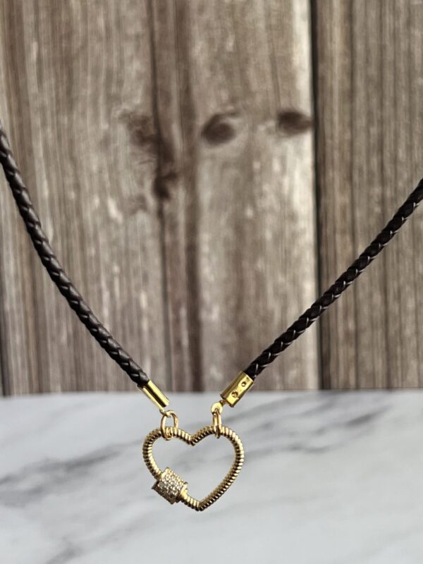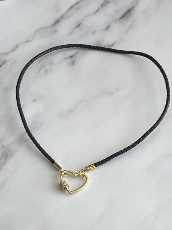 שרשרת עור צמה מינימליסטית בגוון חום כהה עם סוגר קדמי נוח לשימוש בזהב משובץ זירקונים.