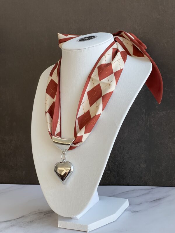 שרשרת צעיף בורדו מעוין עם תליון לב כסוף