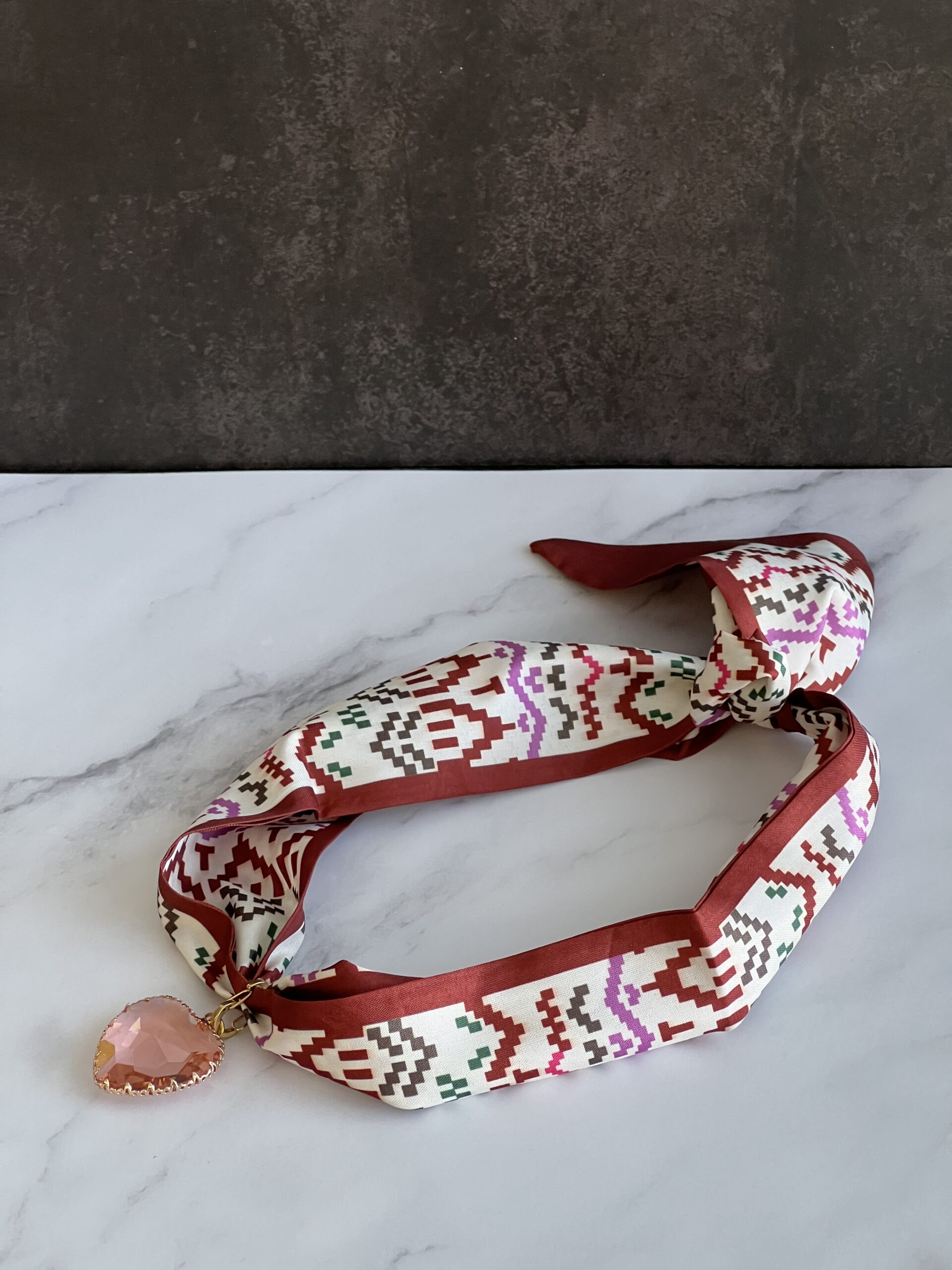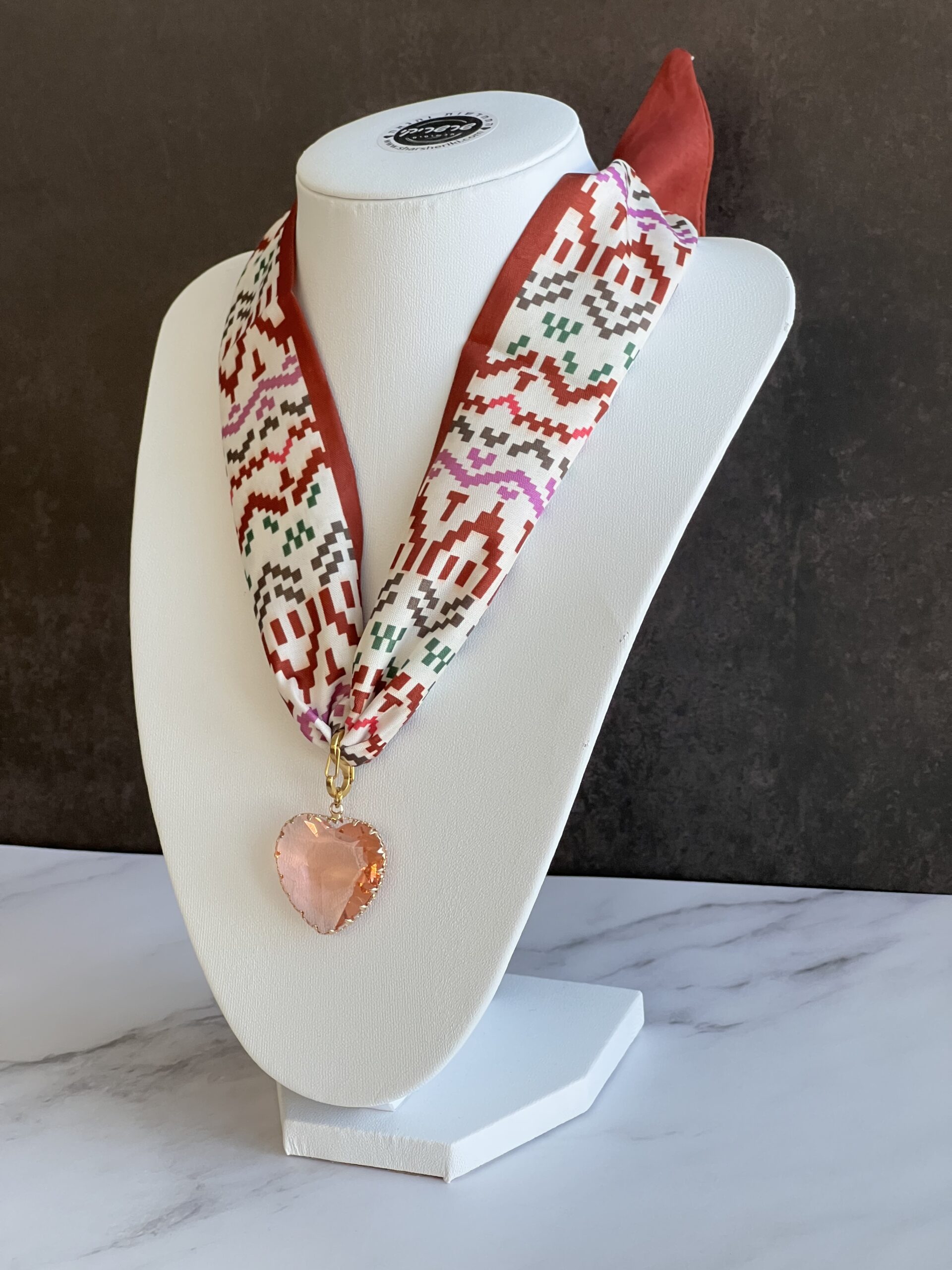 שרשרת צעיף בורדו עם תליון לב ורוד