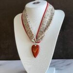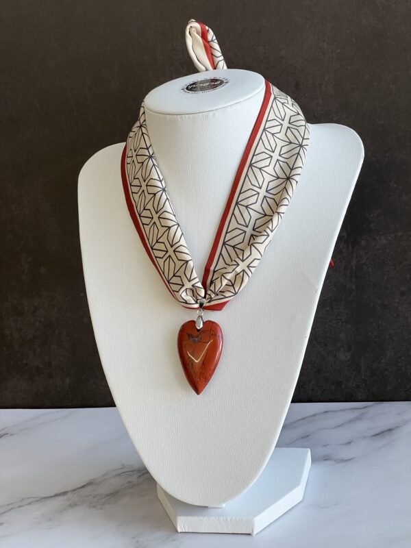 שרשרת צעיף גאומטרי עם תליון לב אדום
