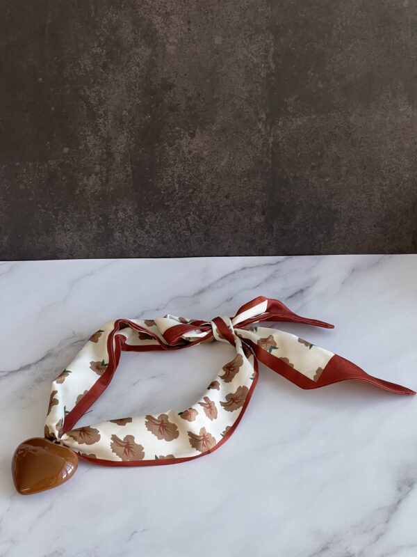 הכירי את הטוויסט המושלם לצעיף הקלאסי, צעיף אלגנטי הנקשר מאחור, עם תליון לב אקריל.