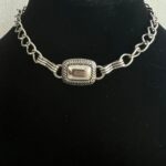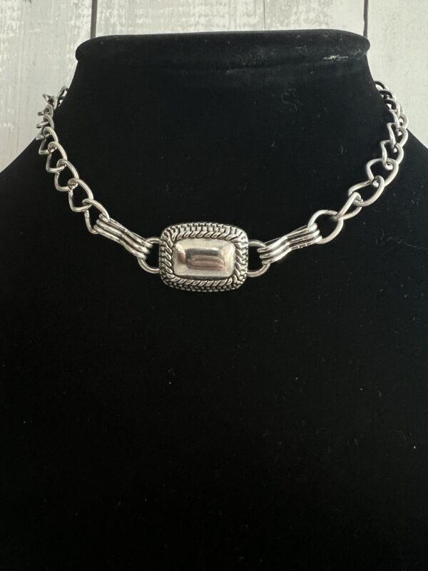שרשרת צ׳וקר לולאות עם אלמנט כסוף אל חלד מלבני מבריק .