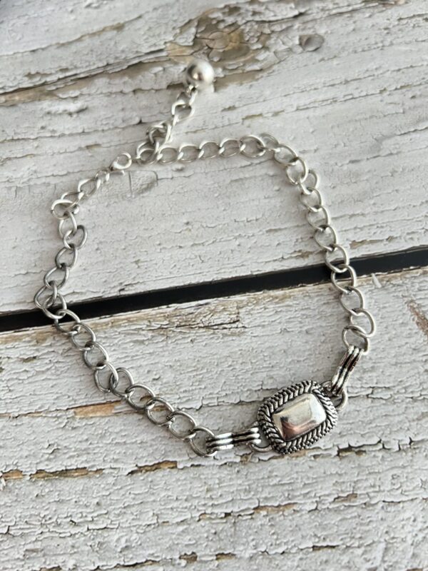 שרשרת צ׳וקר כסופה עם אלמנט מלבני מבריק