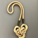 שרשרת שילובים עשויה מחבל עבה בגוון חיטה ולולאות אקריל מוזהבות.