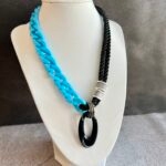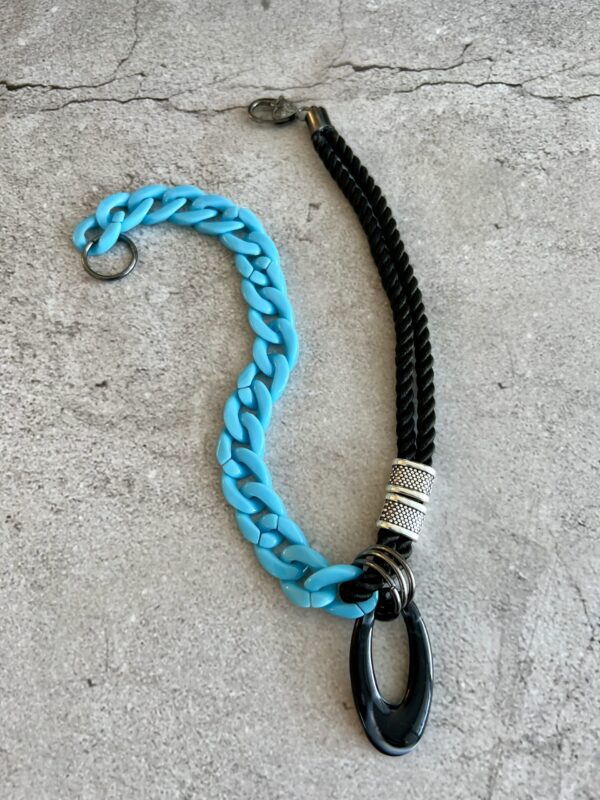 שרשרת שילובים מיוחדת ומקורית שמשלבת חבל מלופף בשחור עם לולאות פלסטיק ותליון לולאה. השרשרת קלילה ותשדרג כל לוק .