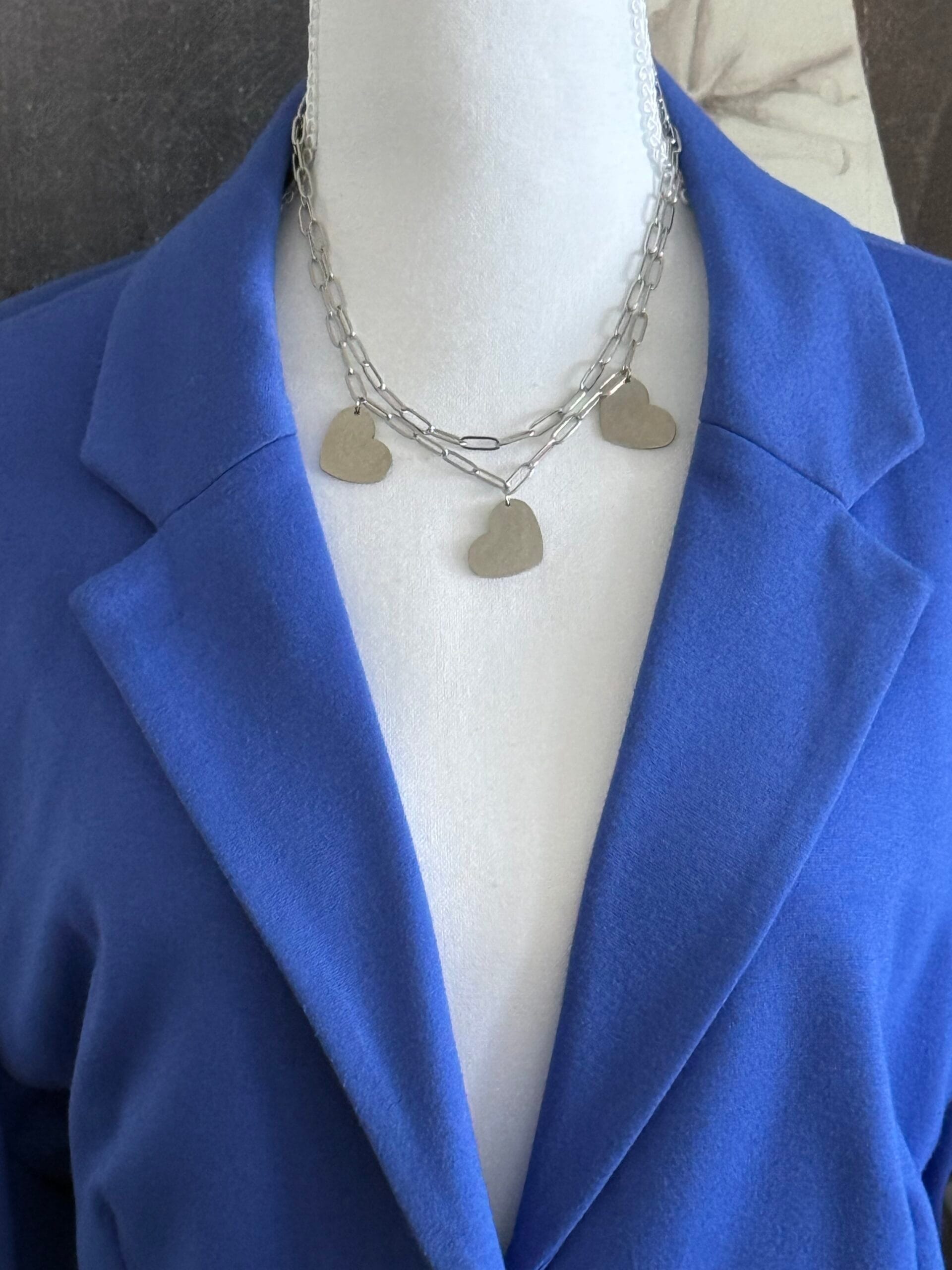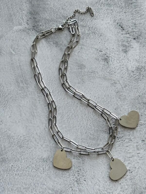 שרשרת שכבות לבבות כסוף