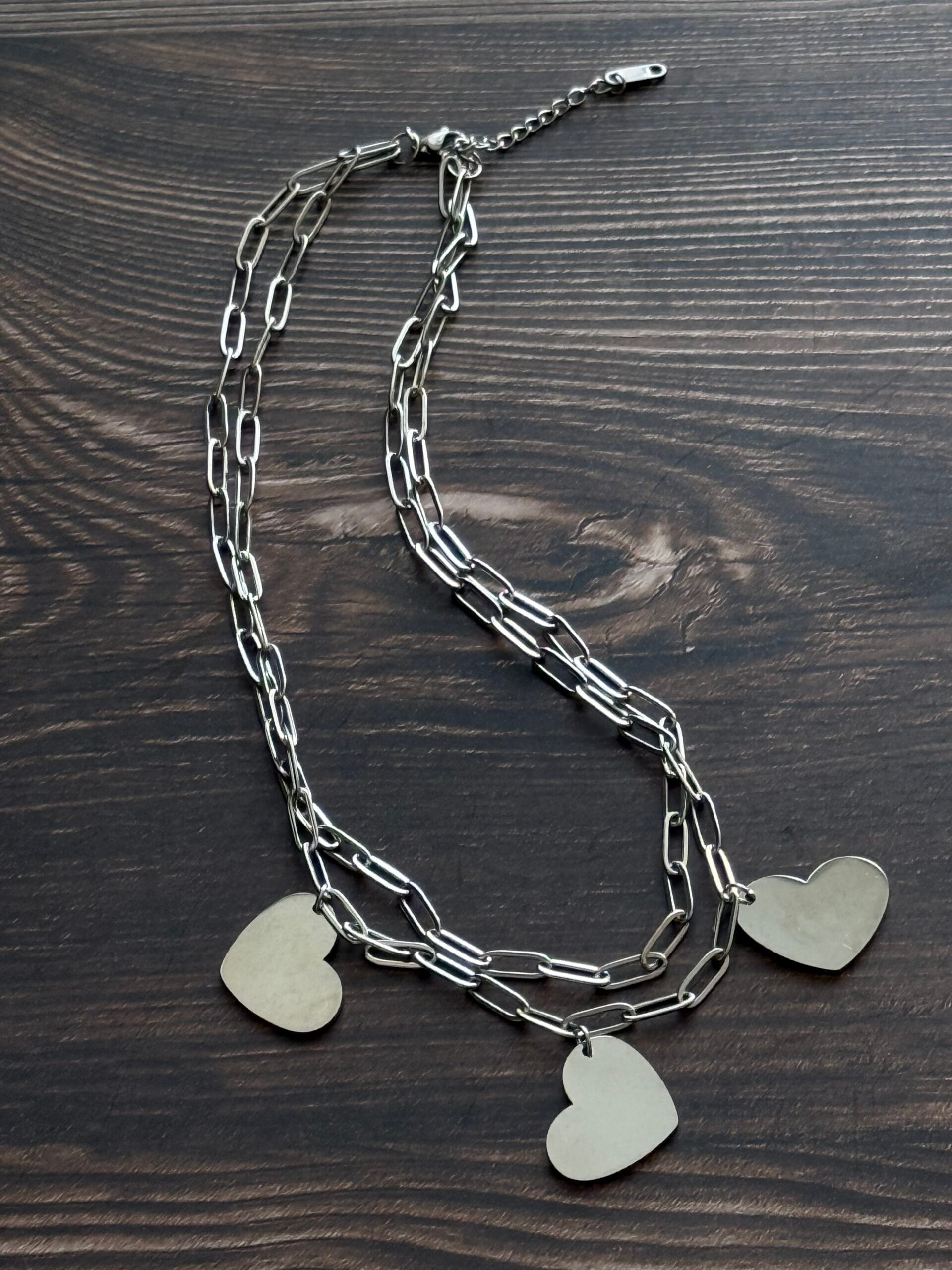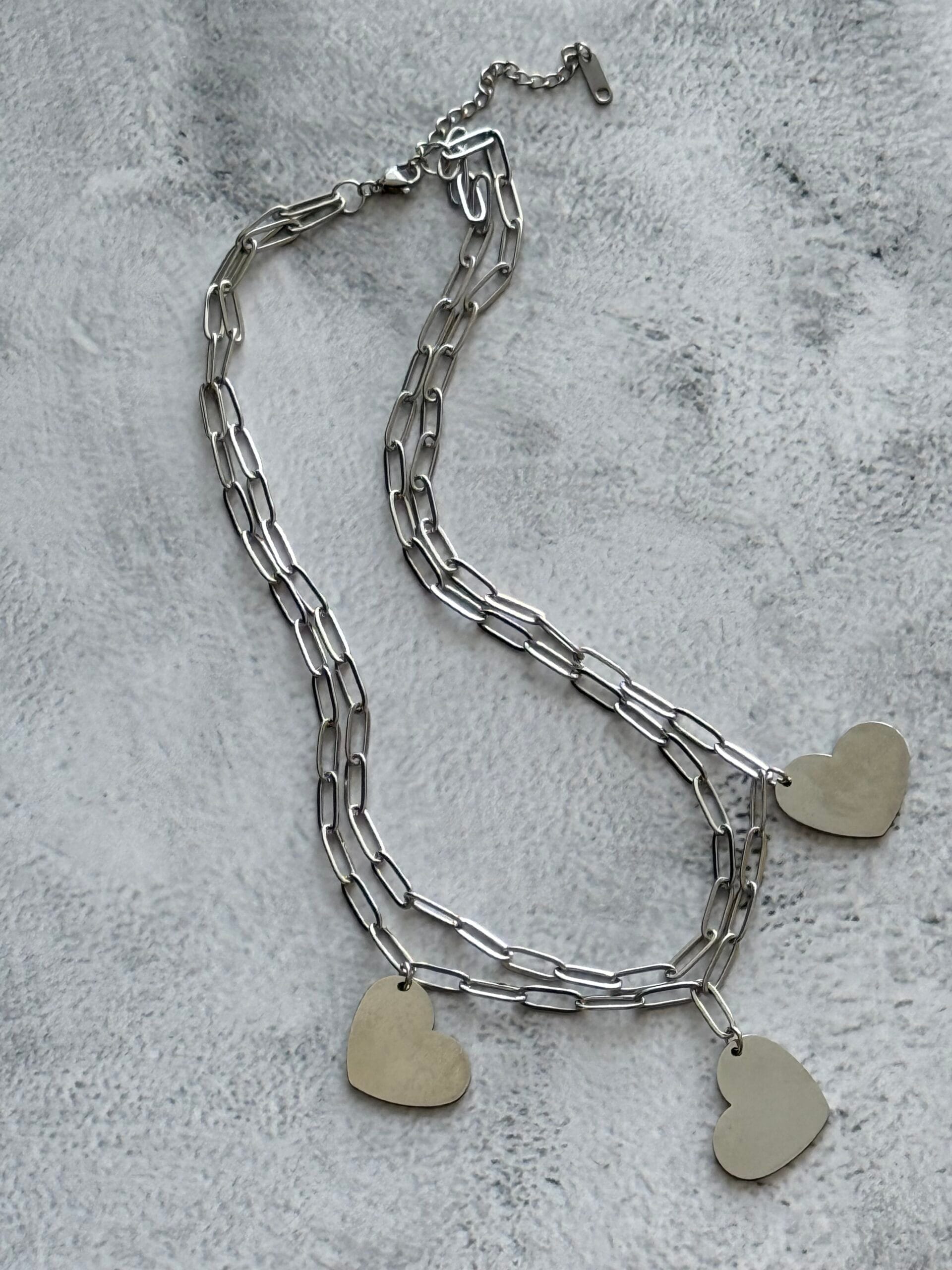 שרשרת שכבות לבבות כסוף - שרשריקי sharsheriki