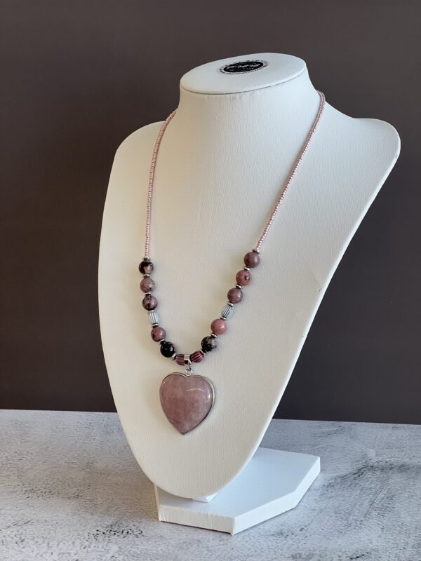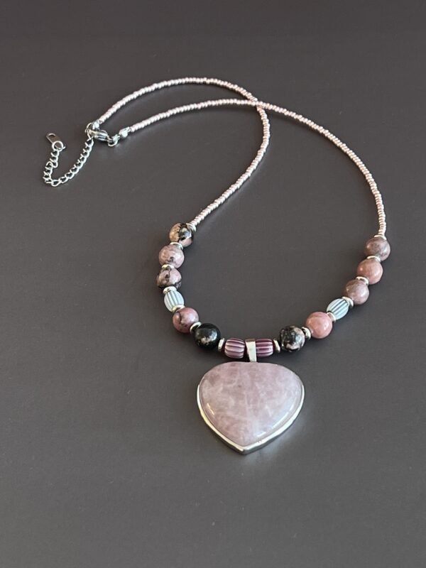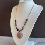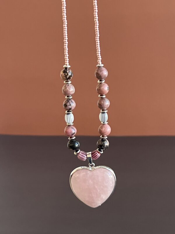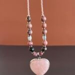 תליון לב מאבן חן ורודה רוז קוורץ ואבני רודונייט.