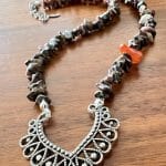 שרשרת אבני חן טבעיות בגווני אדמה בשילוב תליון כסוף וינטג'.