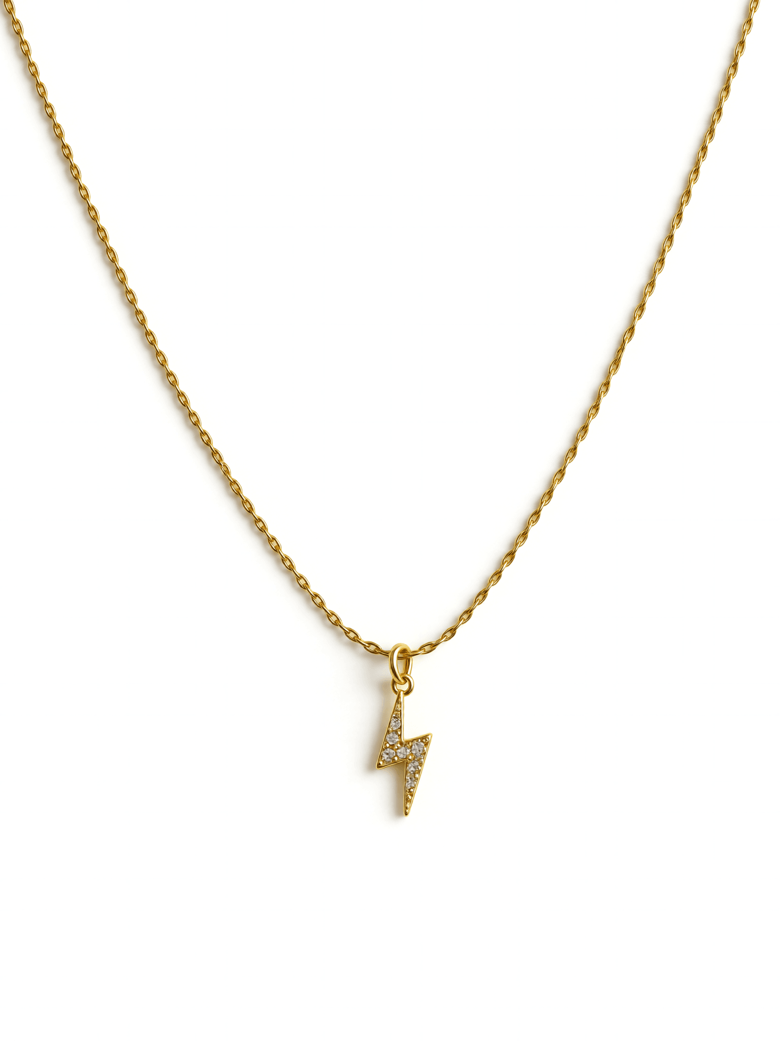 שרשרת לולאות עדינה אל חלד מצופה זהב עם תליון ברק משובץ זירקונים.