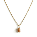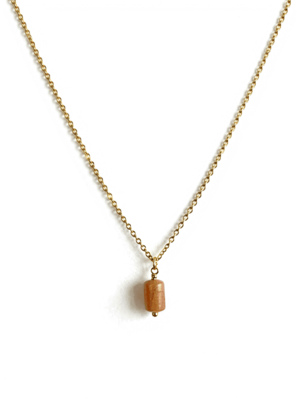 שרשרת לולאות עדינה אל חלד מצופה זהב עם תליון צילינדר עשוי אבן חן בגוון כתום.