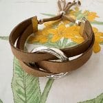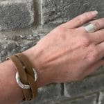 צמיד עור בגוון חום עם אלמנט חישוק מתכת .
